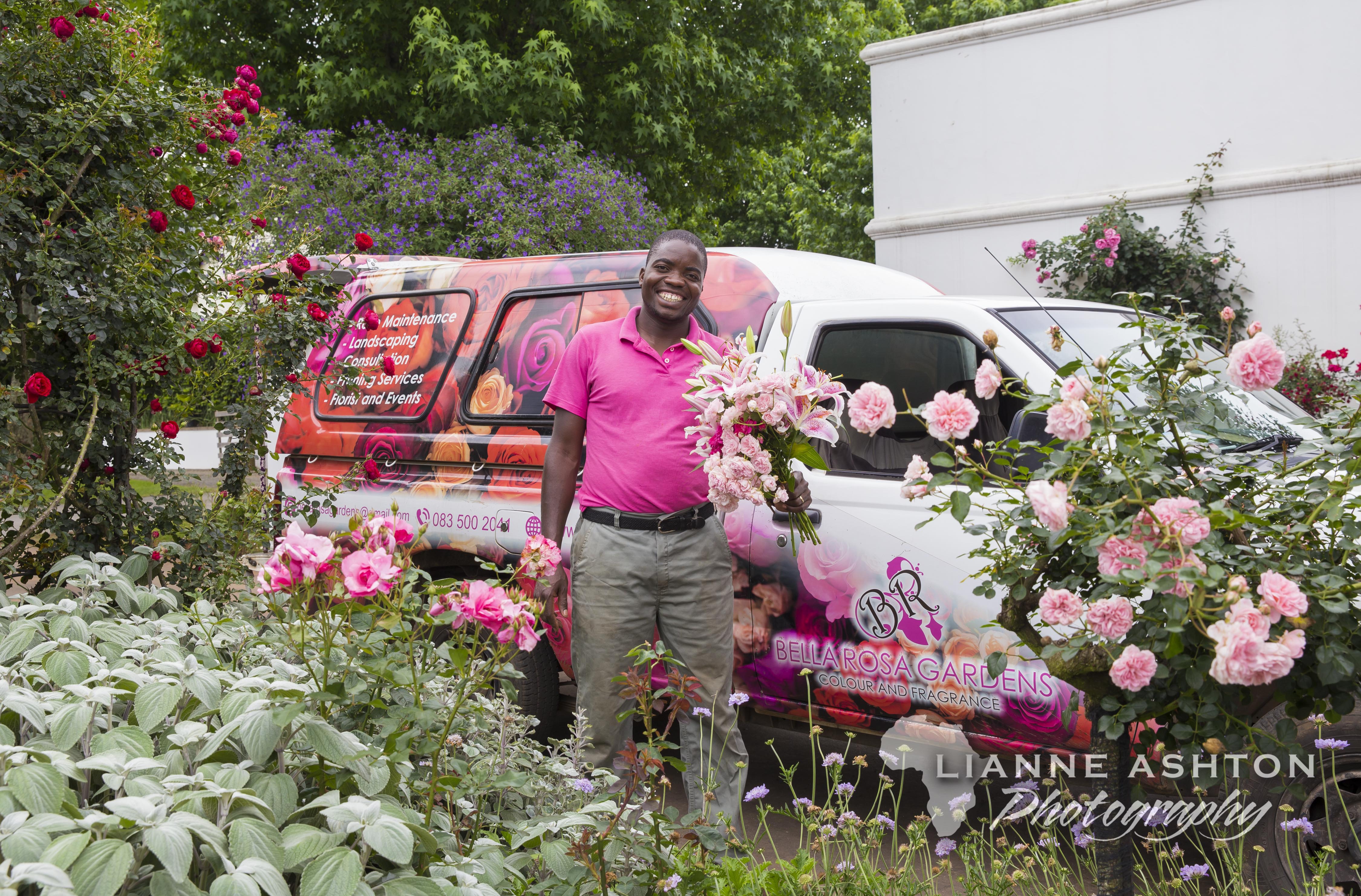Elizabeth Thornton is one of those people. In fact she has modelled her business on ‘gifts!’ At the Bella Rosa Bloom in the Garlington Estate in Hilton, you will find a buzz of activity – be it arranging the most exquisite bunches of flowers, landscaping and rose management, hosting guests in her self-catering accommodation and running a gift shop! She has a strong team working with her too who make it all possible. Faith now runs the flower business, gift shop and the accommodation and then last but not least, the men in pink! The men in pink of the Bella Rosa Bloom head up the landscaping and rose management. You cant miss them (!) with their vibrant pink shirts, big smiles and their love of gardening. Elizabeth’s garden speaks for itself and for their work!